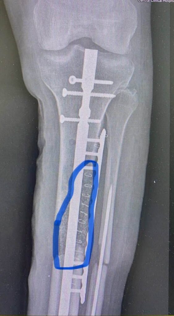 Буквально за несколько дней до этого праздника в той же Умани, в простой больнице, благодаря вашей поддержке проведен заключительный этап реконструкции этого тяжелейшего перелома бедра. Там, где кость отсутствовала, появилась костная крошка, взятая у самого пациента, плюс заменитель кости нового поколения Bonalive с мощным антибактериальным эффектом, что приобретён тоже с вашей поддержкой, друзья. Спасибо!