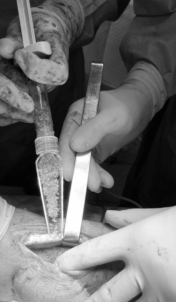 Но если кратко – то дорого при больших дефектах кости. Сопряженных с предшествующей тяжёлой инфекцией. А именно о таких дефектах идёт речь. Дороги и современные заменители кости, обязательно с антибактериальным эффектом (нет, не костный цемент с антибиотиком – это для коллег). Дороги и системы для забора кости из здоровой конечности пациента с целью ее последующей пересадки.