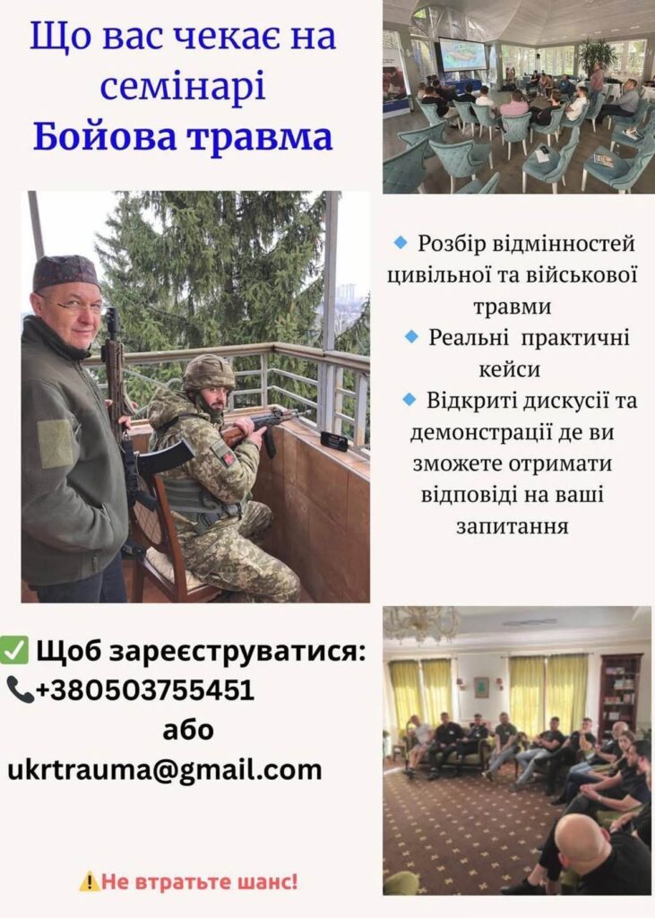 Шановні колеги! Останній дзвінок! Реєстрація на Семінар “Бойова травма” завершується.