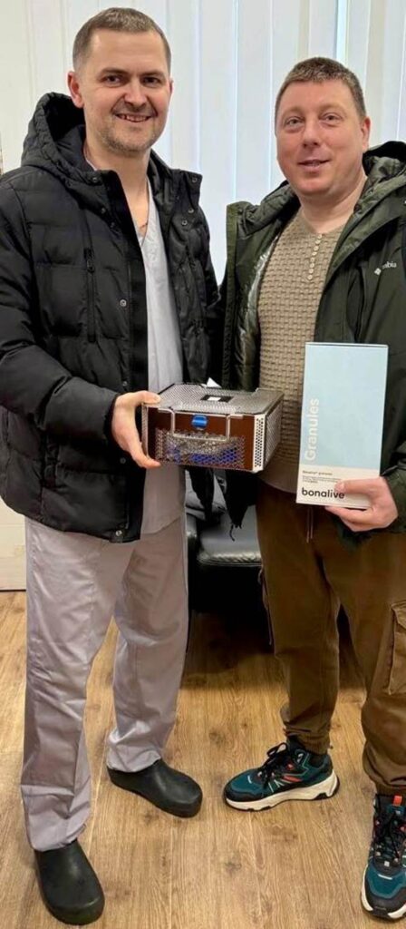 На первом фото – коллеги из Житомира, что получили, благодаря вам, друзья, набор инструментов и заменитель кости.