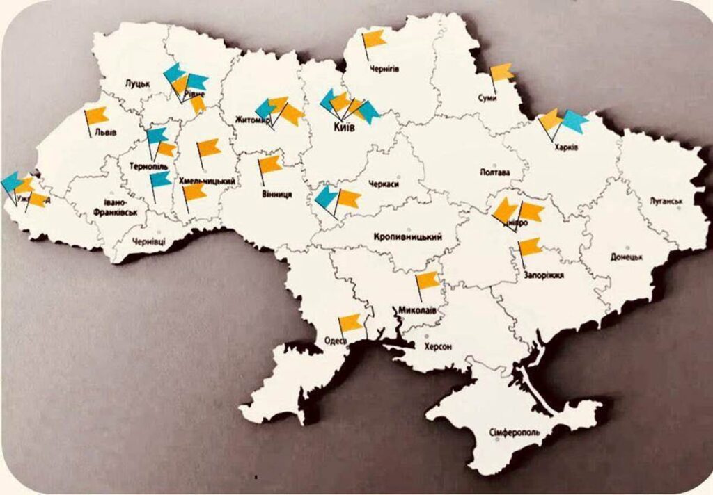 На третьем скрине вы видите карту Украины. И флажки. На этой карте не отмечены расходные материалы. Тут отмечены только купленные на ваши средства, друзья, базовые наборы травматологических инструментов немецкого производства. Жёлтый флажок – это набор «Малые фрагменты». Синий флажок – это «Большие фрагменты». С одной стороны, 32 набора – это круто! Спасибо вам, друзья! С другой стороны, и «непокрытых» территорий много, да и больниц в каждом городе, где лечат раненых, далеко не одна. К ужасу и сожалению. И лечить раненых на этой войне еще предстоит годы и годы…